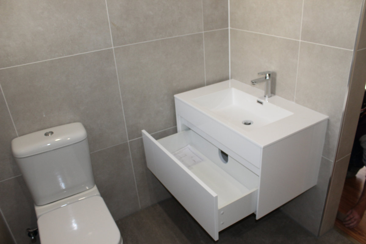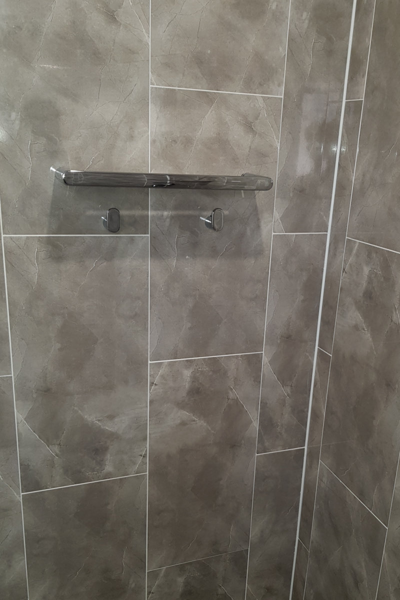 February 13 2021 1Comment Small Bathroom Revamp Posted by Bernie Kruger In Bathrooms 𝗦𝗺𝗮𝗹𝗹 𝗕𝗮𝘁𝗵𝗿𝗼𝗼𝗺 𝗥𝗲𝘃𝗮𝗺𝗽 A small bathroom converted from Bath to a walk-in shower with a sliding door. Wall Hung Basin VanityWC and Wall Hung Basin VanityClosed Coupled WC with FixturesNew Closed Coupled WCTiling ProgressShower Shelf and Robe HooksTiling ProgressShower Panel and Shower HeadShower Floor SealingShower Entrance and Hand Shower with MixerShower SeatMixer Hand Shower and RackLoft Extractor and DownlightsFinishing and SealingTowel RailsSloped Shower Floor DetailHollow Core Sliding Door and PelmetHollow Core Sliding Door and Pelmet Share: